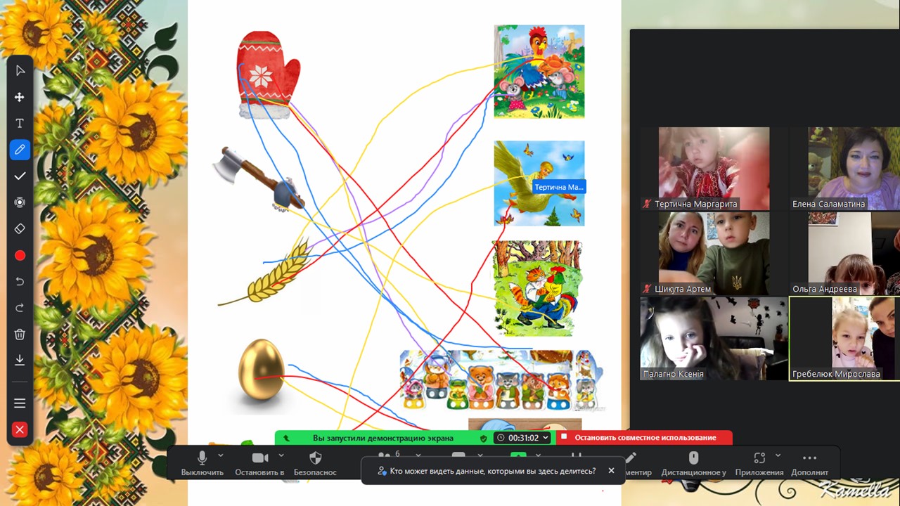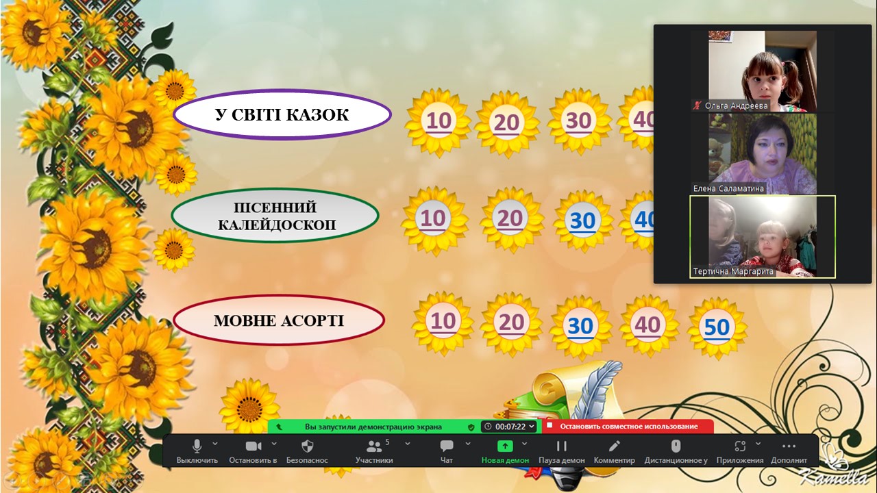 Діти згадували назви та героїв українських народних казок, відгадували загадки, ребуси, виконували вправи на визначення звуків, слів-антонімів.