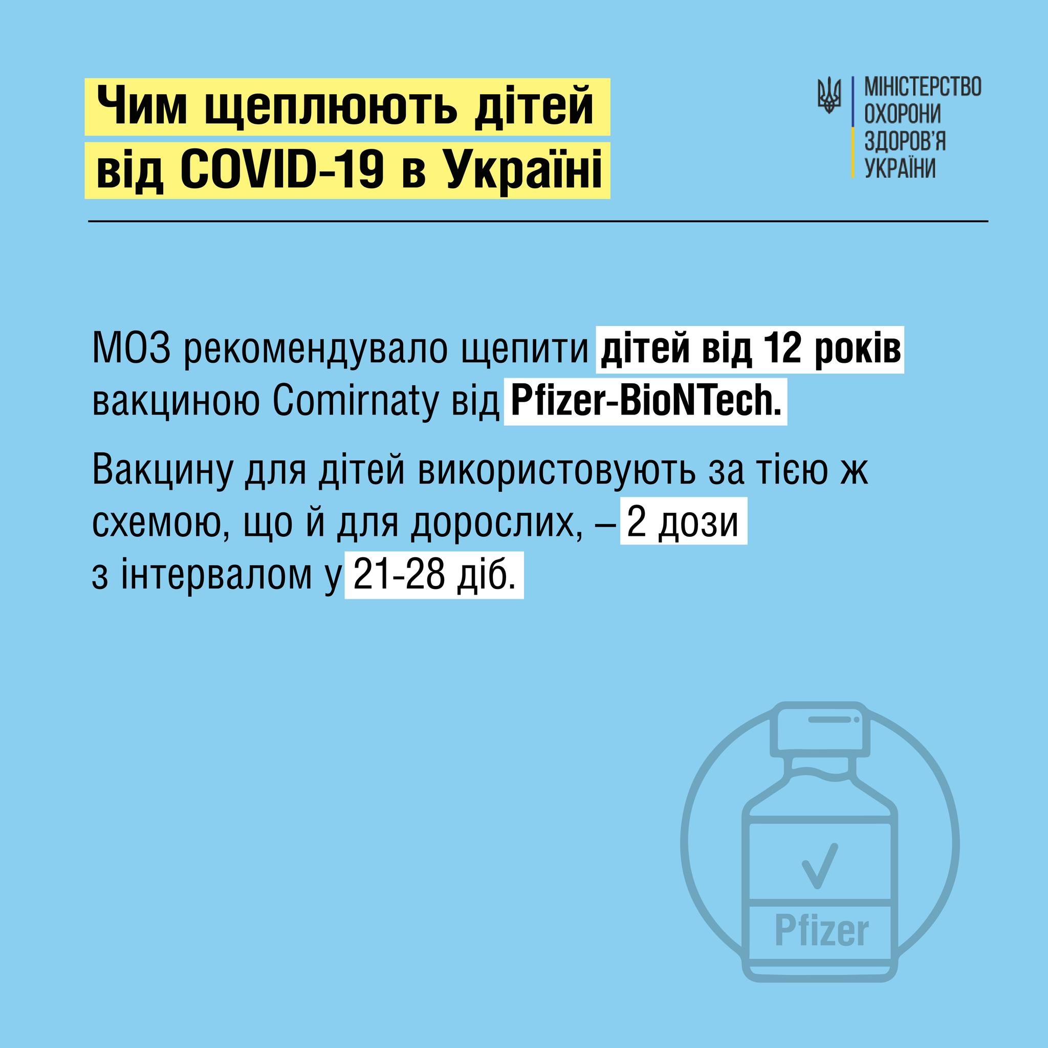 Міністерство охорони здоров'я України рекомендує зробити щеплення від COVID-19 як дорослим, так і дітям з 12 років