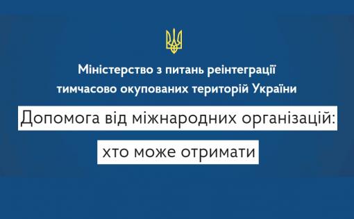В Міністерстві з питань реінтеграції тимчасово окупованих територій України повідомляють, що міжнародні організації продовжують надавати допомогу українцям, постраждалим від війни. На сьогодні спільно з Урядом України реалізуються три такі програми.