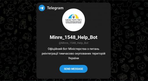Міністерство з питань реінтеграції тимчасово окупованих територій України запустило чат-бот Minre_1548_Help_Bot . Його створили для звернень українців, які потребують евакуації чи гуманітарної допомоги.