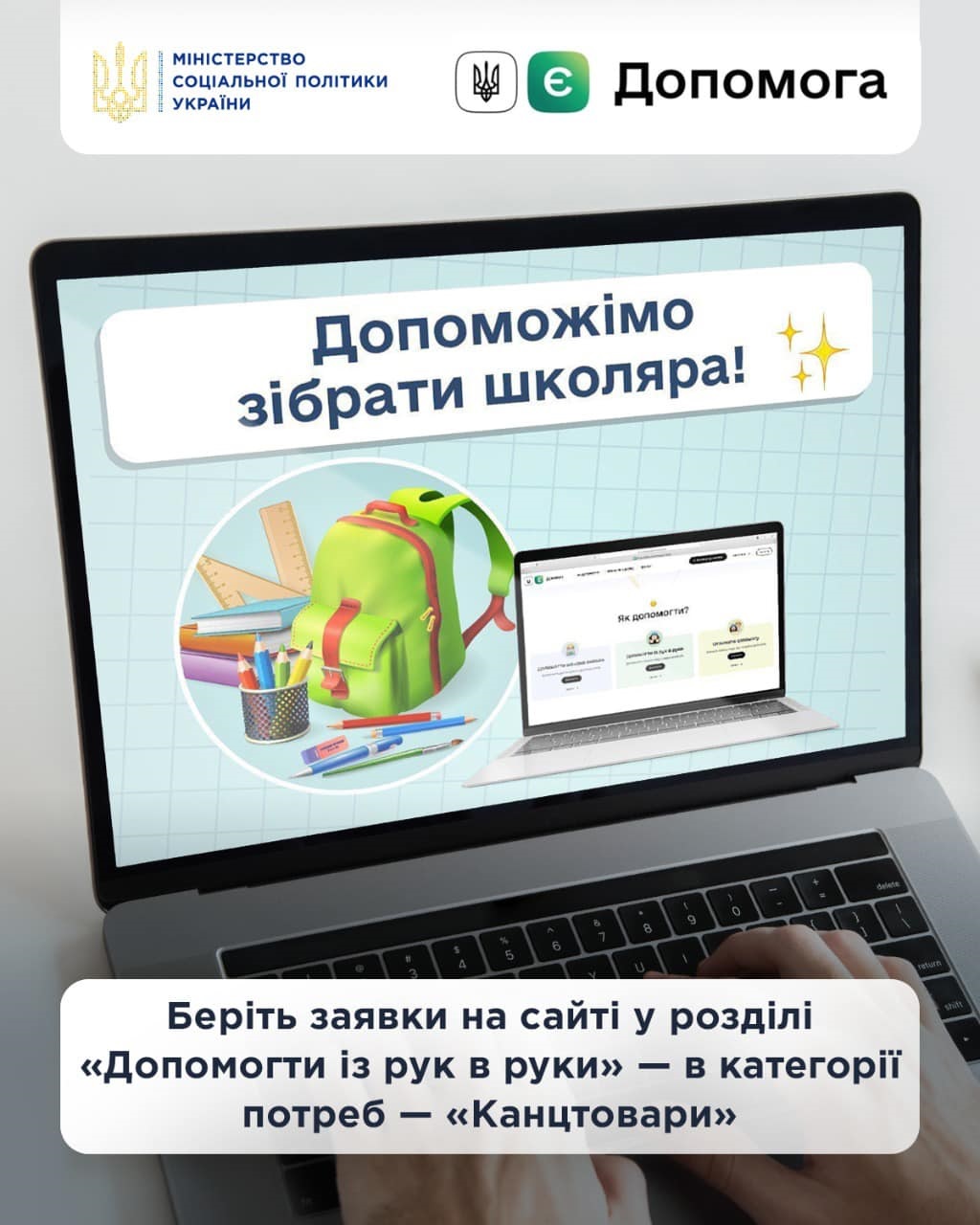 Міністерство соціальної політики України закликає небайдужих прийняти участь в акції "Допоможи зібратися дітям до школи разом з єДопомога !"