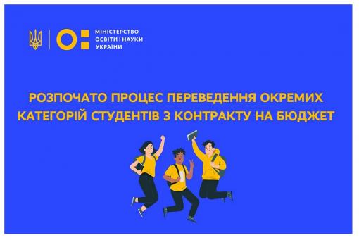 На виконання завдання Президента України перевести на навчання за державним замовленням дітей загиблих захисників України, учасників бойових дій та осіб з інвалідністю внаслідок війни, їхніх дітей, а також жителів особливо небезпечних територій, які зараховані до закладів фахової передвищої та вищої освіти до 2021 року включно, розпочато процес переведення вище зазначених категорій здобувачів освіти, які вже подали підтвердні документи до 18 листопада 2022 року.