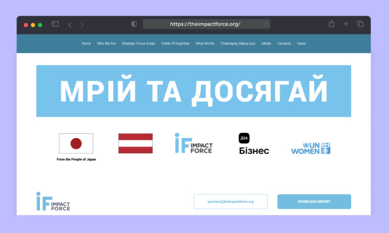 Жіноча освітня онлайн-академія «Мрій та Досягай» від ООН Жінки та Impact Force допоможе українським переселенкам знайти нові можливості та стабільність у важкі часи. Мета програми — забезпечити цифрову грамотність, економічну самодостатність та фінансову безпеку українських жінок і їхніх родин. Завдяки здобутим знанням і розвинутим навичкам у підприємництві та цифрових технологіях жінки зможуть розпочати власні бізнеси, знайти роботу або розширити свої професійні можливості.