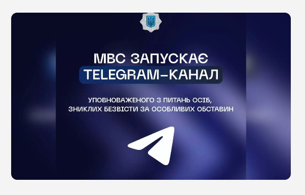 МВС запускає Telegram-канал Уповноваженого з питань осіб, зниклих безвісти за особливих обставин.