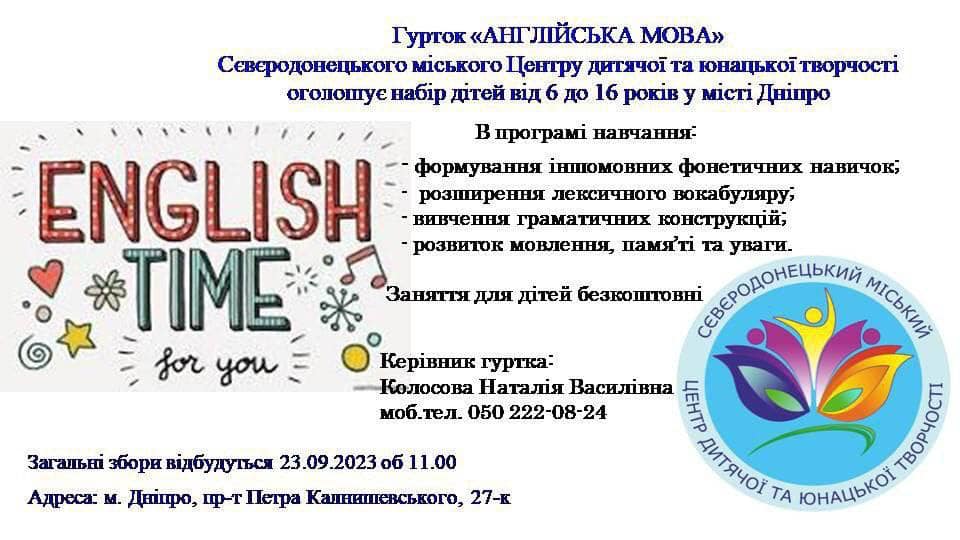 - гурток «Англійська мова» (діти віком від 6 до 16 років);