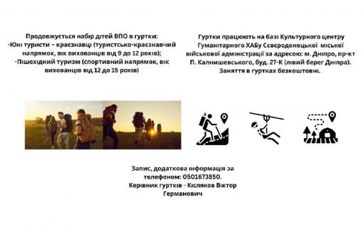 На базі Культурного центру Гумхабу Сєвєродонецької МВА у місті Дніпро проводиться набір дітей ВПО у туристичні гуртки