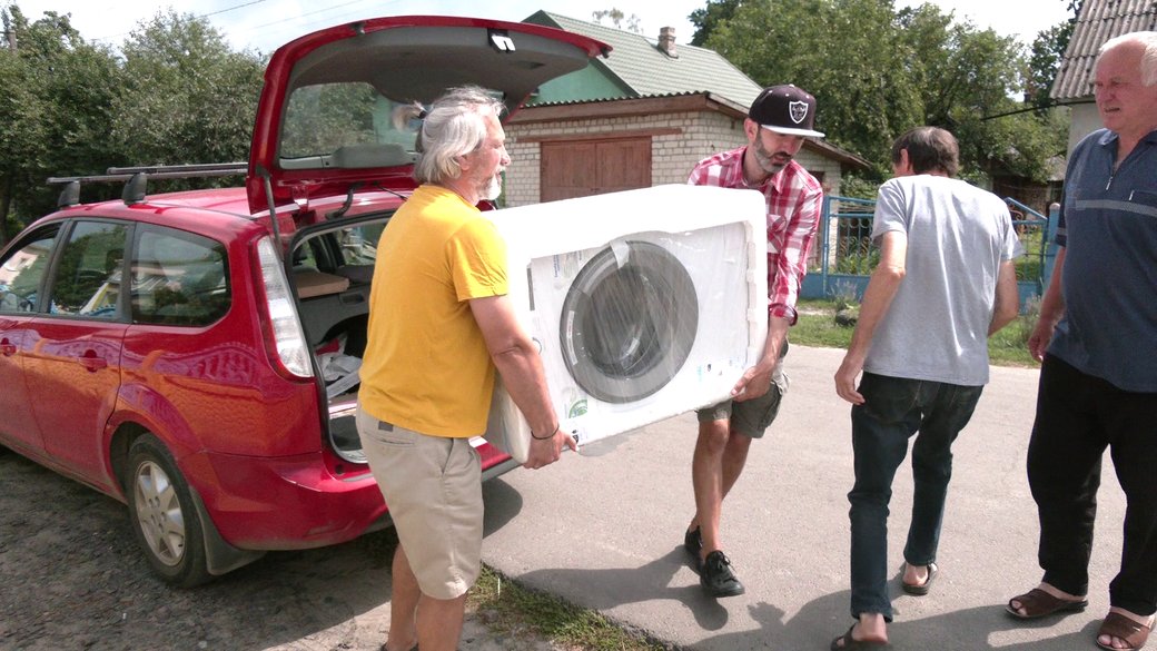 "Познайомилися з переселенкою Любою з трьома дітьми і вона обмовилась, що вони живуть в Клеванському гуртожитку, та в них існує така проблема. Ми вирішили з друзями скинутися. В мене є товариш, він швед, але за походженням українець. Він запропонував гроші й ми купили нову пральну машину, — каже волонтер Віталій Скринський.