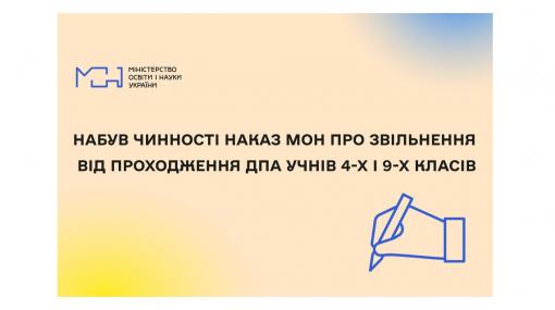 Набув чинності наказ МОН про звільнення від проходження ДПА учнів 4-х і 9-х класів