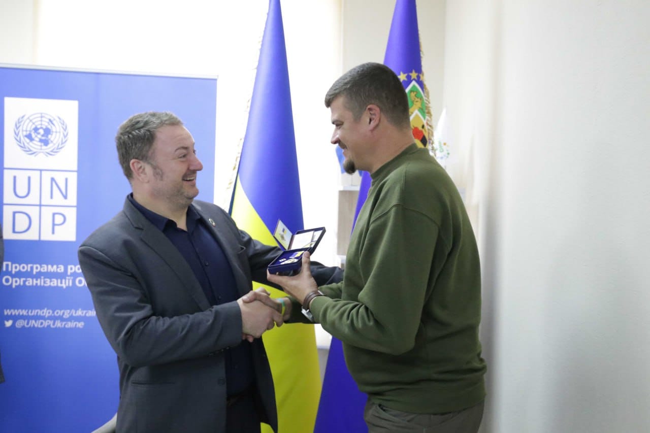 Очільник Луганщини Артем Лисогор подякував ПРООН та представникам уряду Швеції за щиру підтримку та сприяння співпраці у відновленні нашої області та вручив Почесну відзнаку «За розвиток регіону» представникам ПРООН в Україні Нільсу Крістенсену та Олені Рудич.