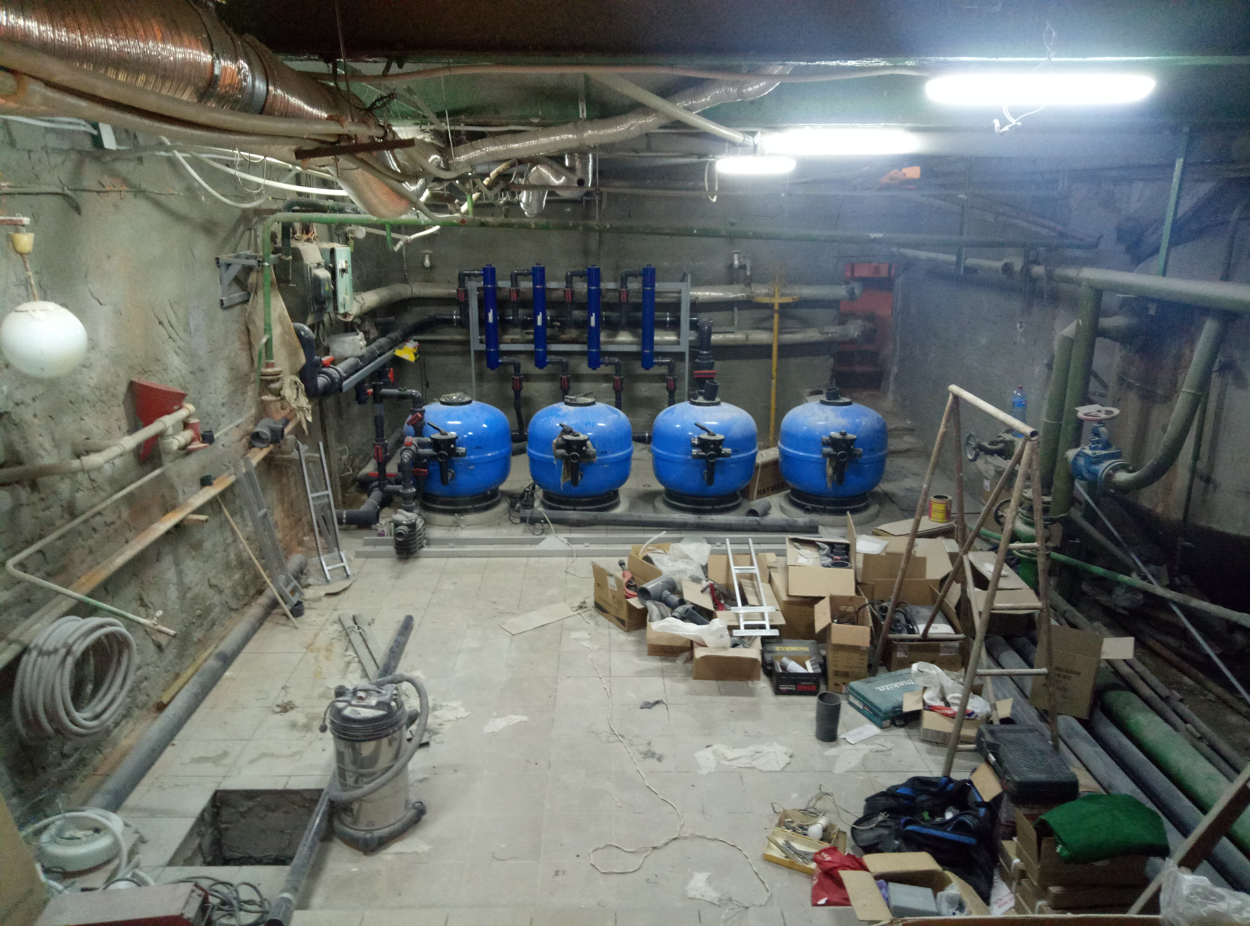 Наразі вже виконано значну частину запланованого. Практично завершено ремонти допоміжних приміщень, спортивної зали. Технологічне обладнання – теплообмінники, циркуляційні насоси, фільтри, припливно-витяжна вентиляція –
