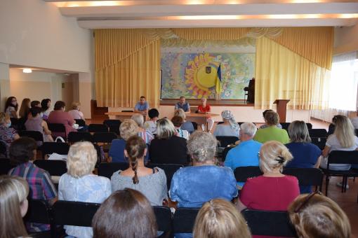 26 серпня керівник військово-цивільної адміністрації міста Сєвєродонецьк Олександр Стрюк провів зустріч з педагогічними працівниками, на якій представив нового начальника відділу освіти Ларису Петрівну Волченко.