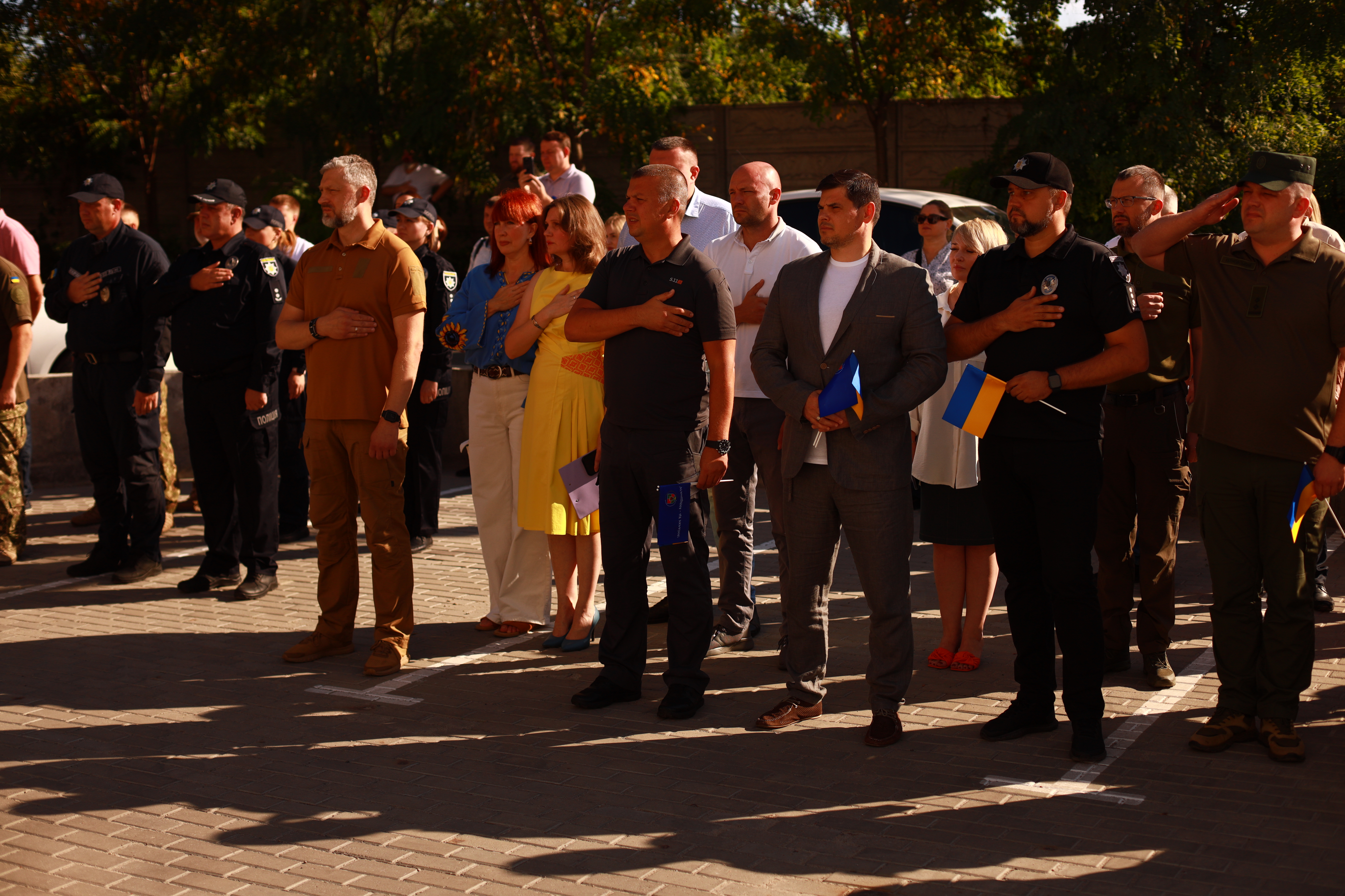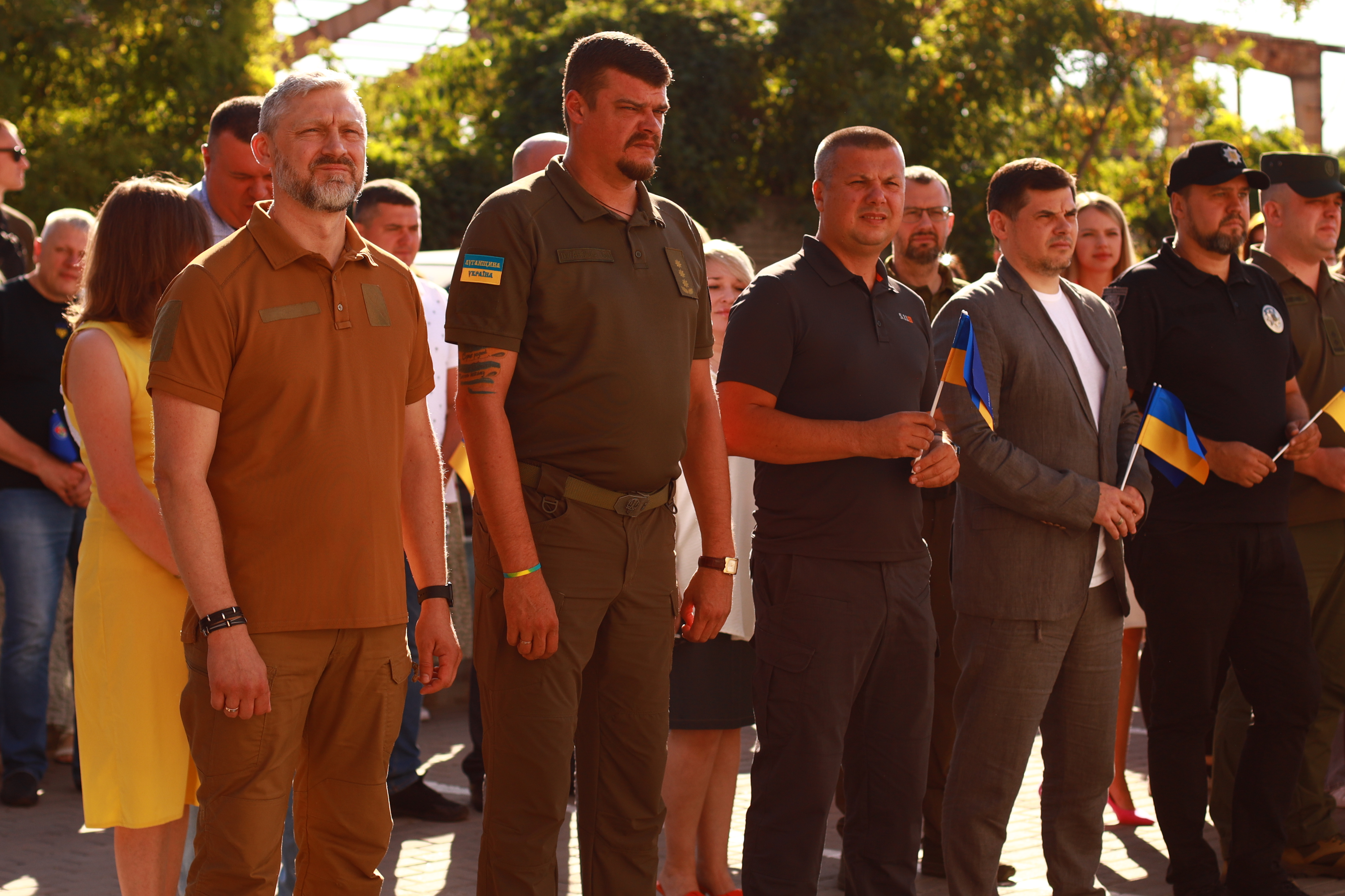 «Ми щодня повертаємо свій синьо-жовтий колір свободи на нашу землю: із шевронами військових та медиків, автівками волонтерів. Він надійно схований від окупантів в будинках наших людей та глибоко у серці кожного українця. Право стояти під синьо-жовтим ми виборюємо втратами та горем», – зазначив голова обласної державної – начальник обласної військової адміністрації Артем Лисогор.