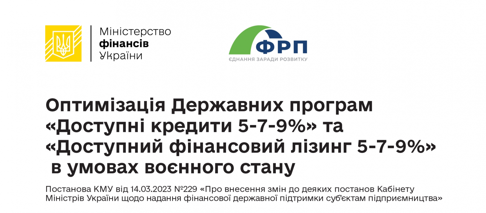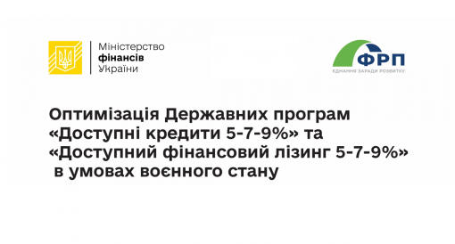 Оптимізація Державних програм «Доступні кредити 5-7-9%» та «Доступний фінансовий лізинг 5-7-9%» в умовах воєнного стану