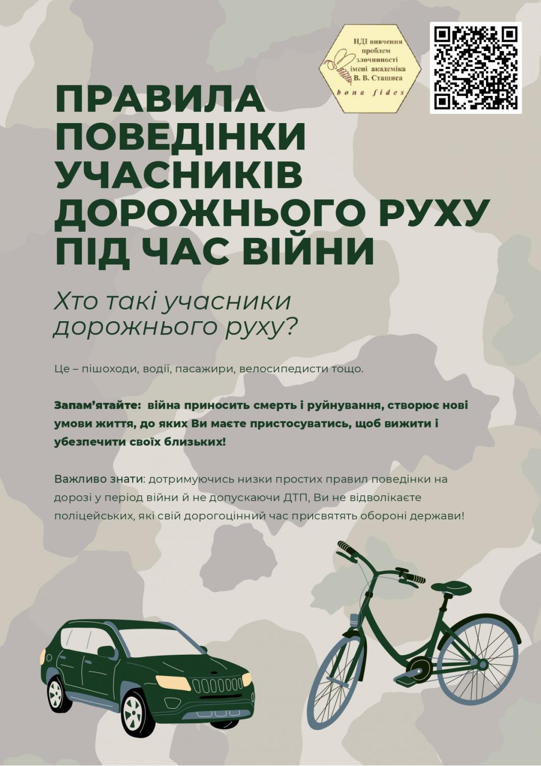 Науково-дослідним інститутом вивчення проблем злочинності імені Академіка В.В. Сташиса було розроблено Пам'ятку "Правила поведінки учасників дорожнього руху під час війни".