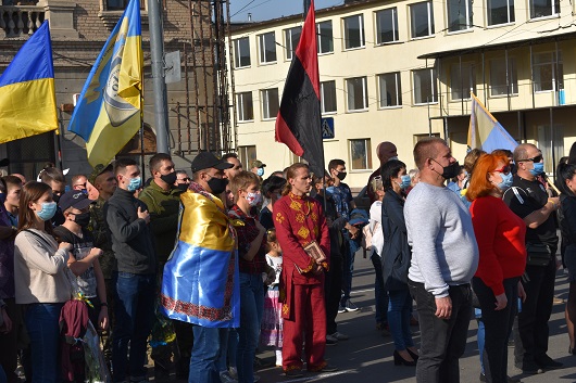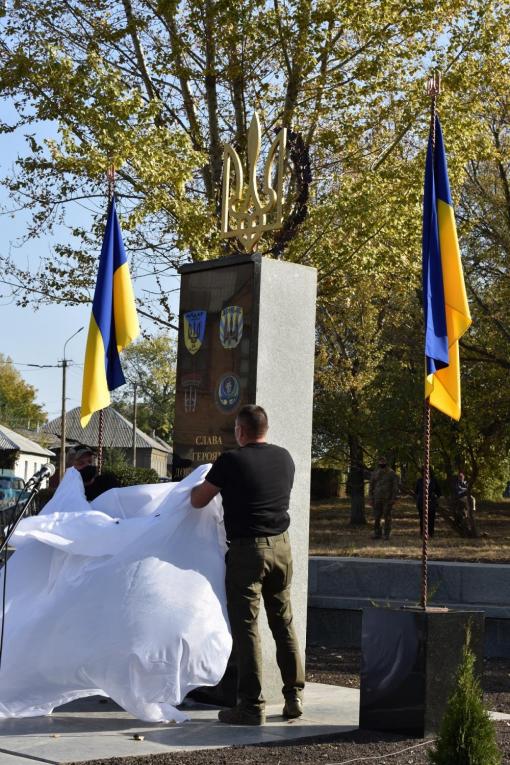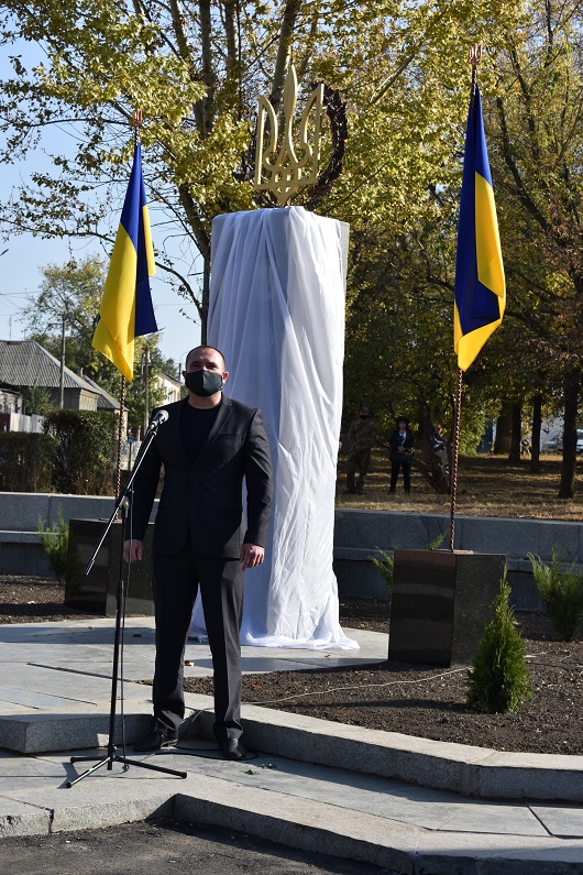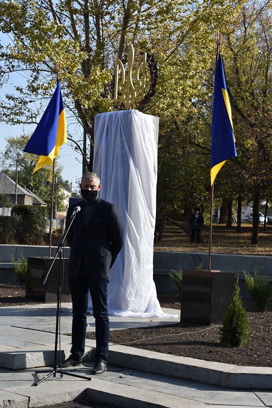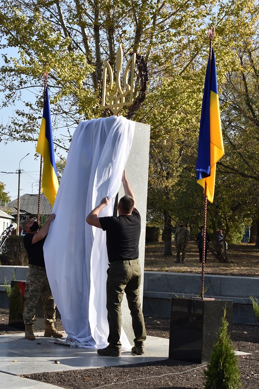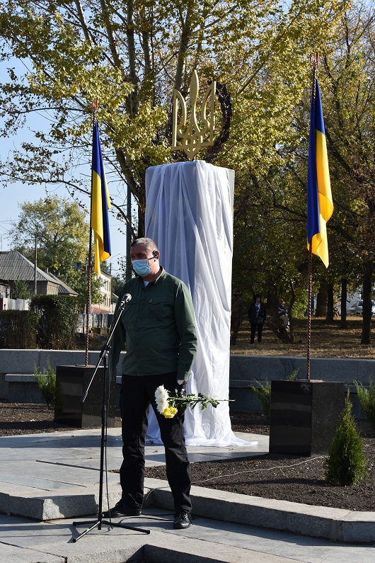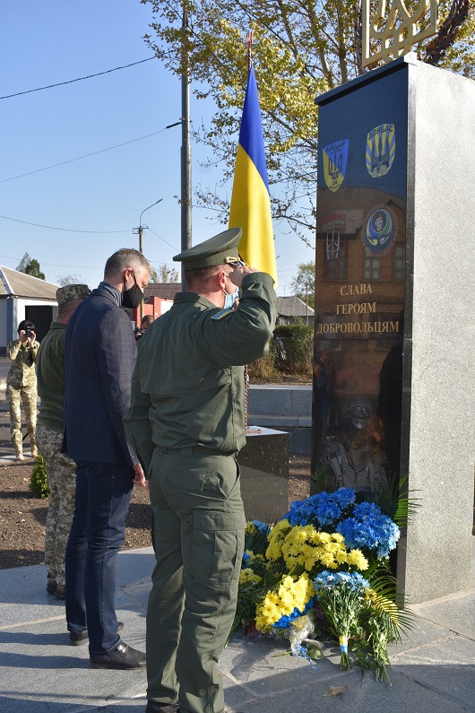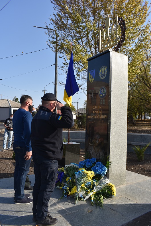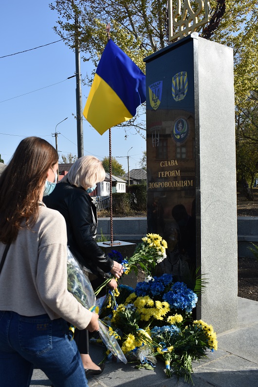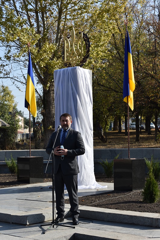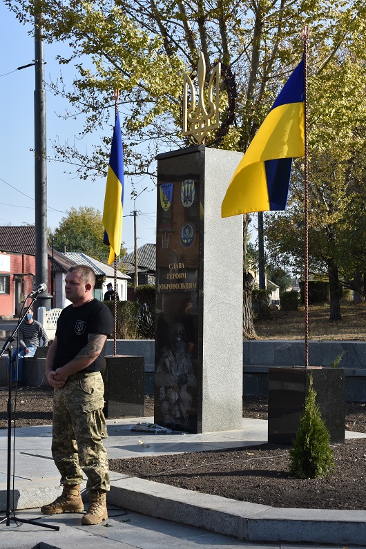 «Ми спорудили цей пам’ятник добровольцям, людям, які в тяжкі часи першими взяли зброю й пішли захищати нашу землю і наш народ. Людям, які першими зупинили ворога, що засадив кігті в нашу землю», - наголосив Дмитро Карпюк.