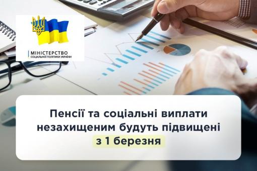 Пенсії та соціальні виплати незахищеним будуть підвищені з 1 березня
