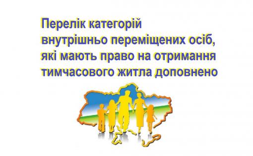 Перелік категорій внутрішньо переміщених осіб, які мають право на отримання тимчасового житла доповнено