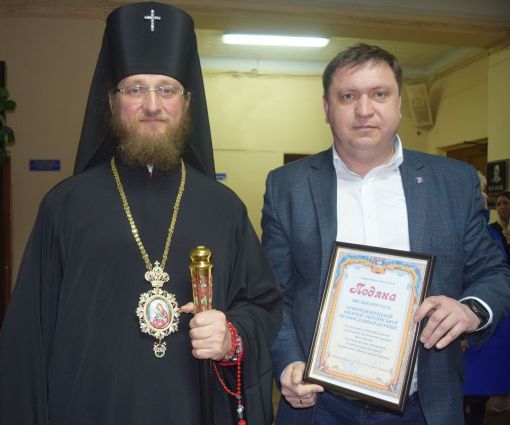 От имени городской власти поздравить епархию пришел и.о. первого заместителя городского головы Сергей Зарецкий. Он поблагодарил за весомый вклад в развитие духовности горожан и по случаю 10-летия вручил благодарности. «От имени городского головы Валентина Казакова, от городского совета и от себя лично хочу поздравить Высокопреосвященнейшего Никодима, всех клириков и прихожан с 10-летним юбилеем епархии. Искренне благодарю за участие в добрых делах, духовное воспитание подрастающего поколения, помощь в решении остросоциальных проблем Северодонецка. От всего сердца желаю вам бодрости духа, мира и неисчерпаемой помощи Божьей в ваших делах», – отметил Сергей Зарецкий.