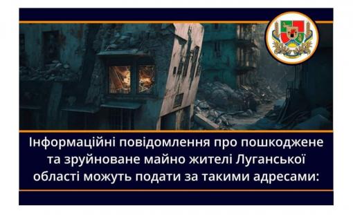 Подати повідомлення про пошкоджене та зруйноване майно можна через 11 ЦНАПів Луганщини в гуманітарних хабах