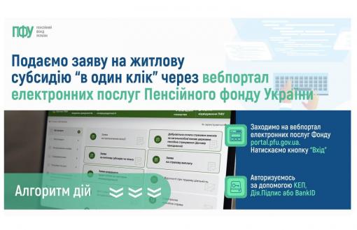 Подати заяву на житлову субсидію можна «в один клік» – на вебпорталі електронних послуг Пенсійного фонду України