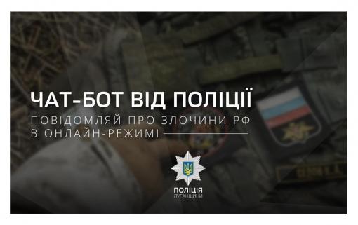 Поліція Луганщини нагадує про функціонування чат-боту та Telegram-каналу для пошуку та документування злочинів рф на території Луганської області