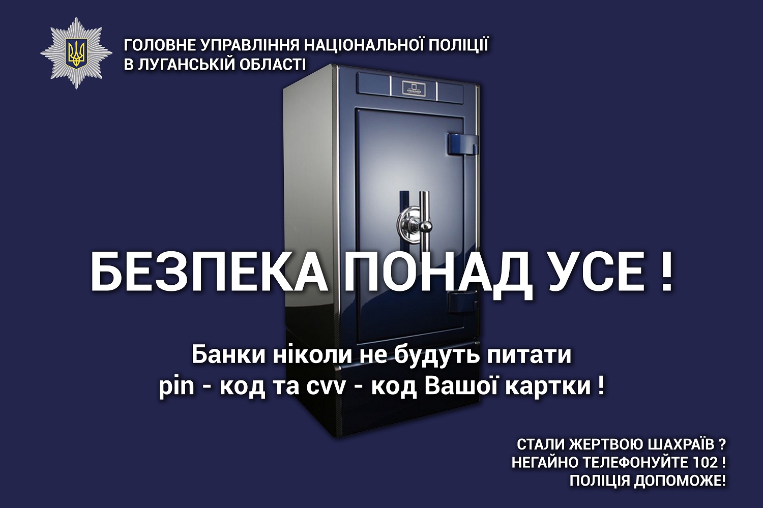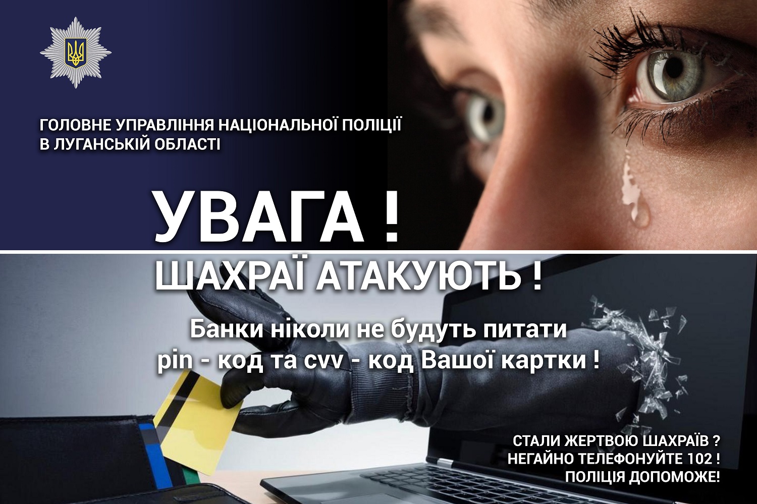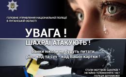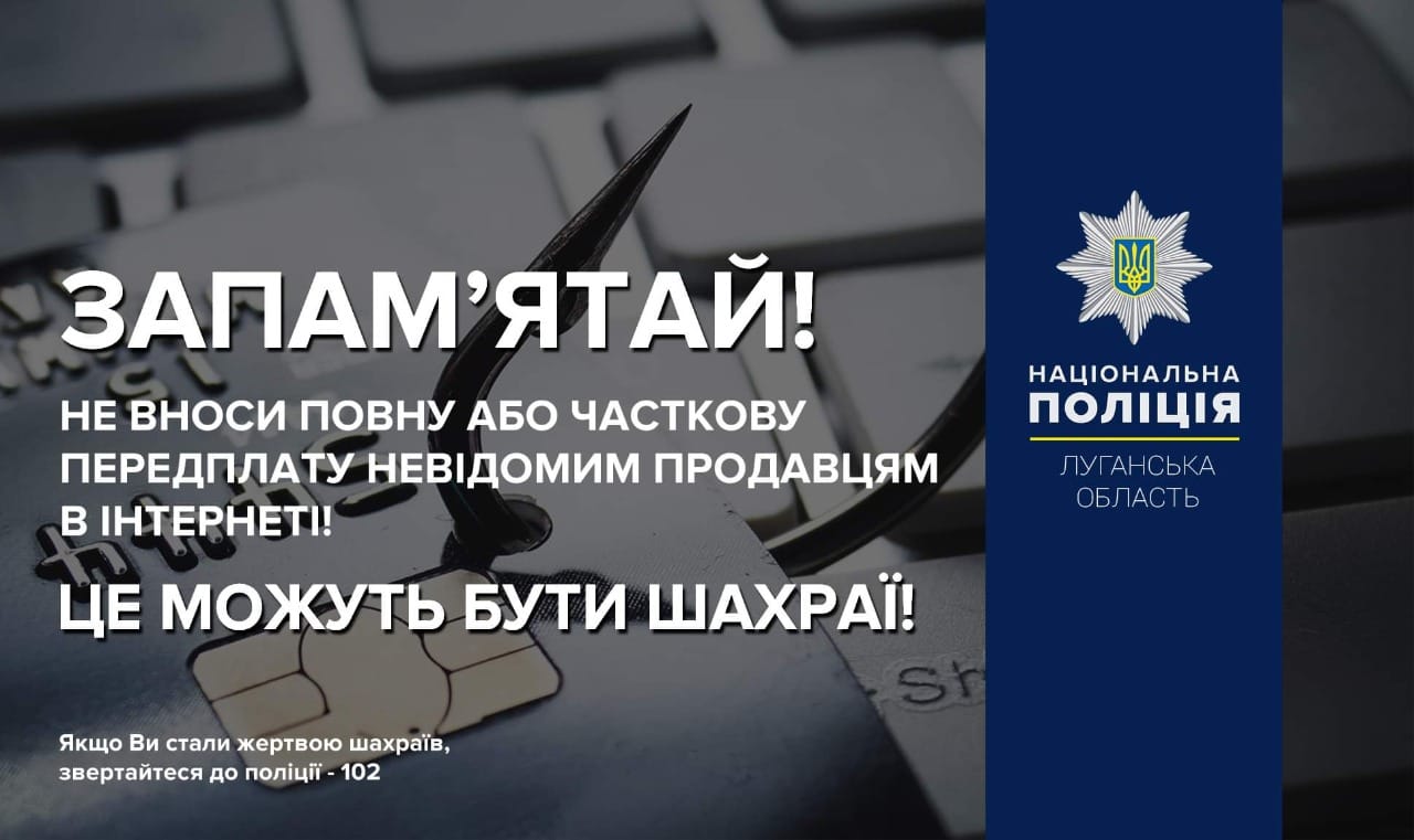 Поліція Луганської області закликає громадян тримати в секреті банківські реквізити та відмовитися від передплати незнайомцям!