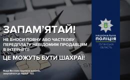 Поліція Луганщини нагадує громадянам основне правило купівлі в Інтернеті – відмовтеся від передплати та надавайте перевагу перевіреним продавцям!