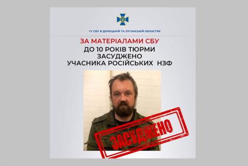 За матеріалами СБУ та публічного обвинувачення Луганської обласної прокуратури командира підрозділу окупаційної армії визнано винним у посяганні на територіальну цілісність і недоторканність України, участі у діяльності не передбачених законом збройних формувань (ч. 2 ст. 110, ч. 2 ст. 260 КК України).