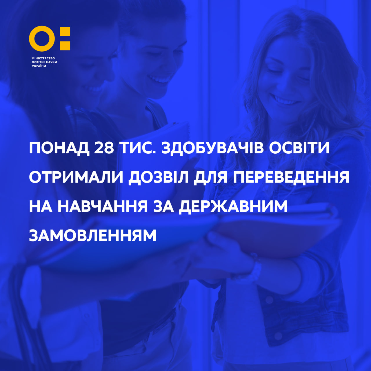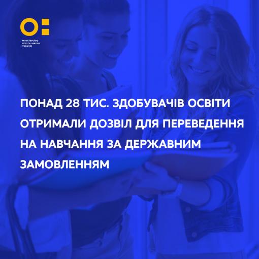 Понад 28 тис. здобувачів освіти отримали дозвіл для переведення на навчання за державним замовленням