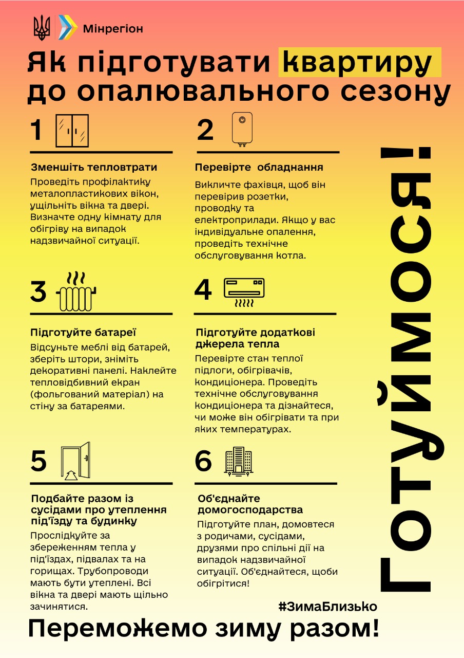 Міністерство розвитку громад та територій України розпочало комунікаційну кампанію «Готуймося!», спрямовану на спонукання громадян активно індивідуально готуватися до опалювального сезону.