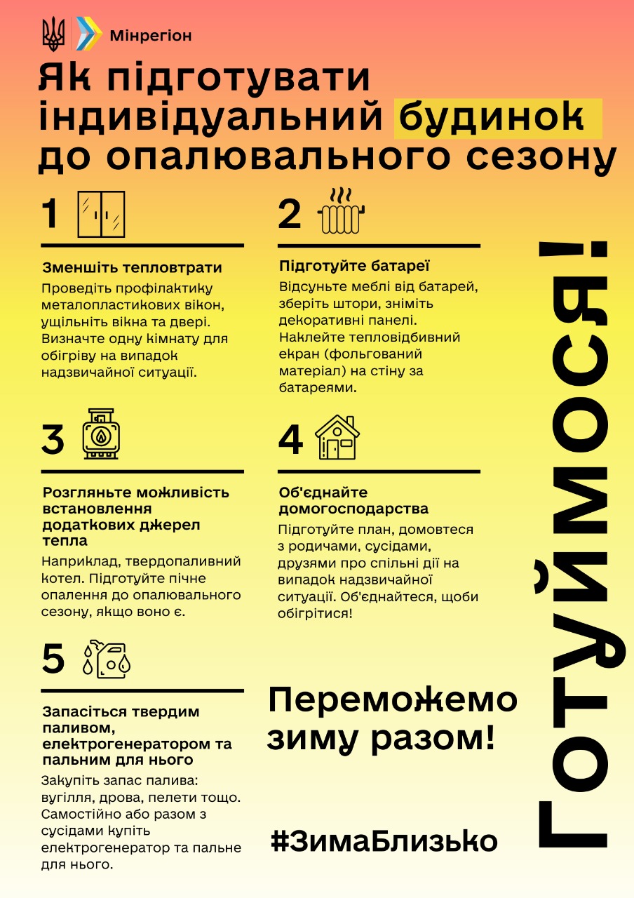 Одним із важливих заходів підготовки є проведення побутової термомодернізації власниками квартир та індивідуальних будинків. Саме первинні заходи дозволять зменшити втрати теплової енергії та створити оптимальний мікроклімат в оселях.