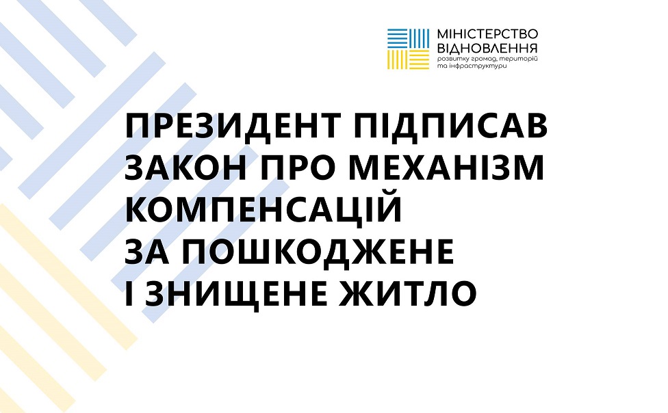 Президент України Володимир Зеленський підписав Закон України, який запроваджує можливість компенсації за знищене та пошкоджене житло, - повідомили в Міністерстві розвитку громад, територій та інфраструктури України .