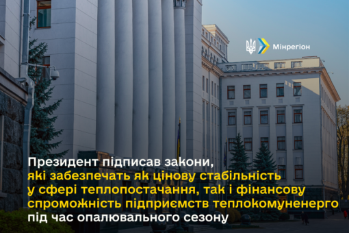 Президент підписав закони, які забезпечать як цінову стабільність у сфері теплопостачання, так і фінансову спроможність підприємств теплокомуненерго під час опалювального сезону