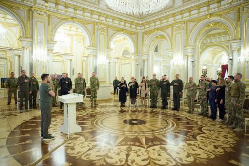 Президент України Володимир Зеленський вручив ордени «Золота Зірка» військовослужбовцям, яким присвоєно звання Героя України, та членам родин загиблих захисників, удостоєних цього звання посмертно, - Офіс Президента України .