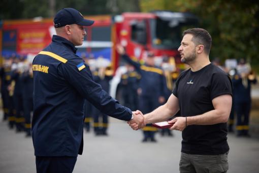 Володимир Зеленський повідомив, що з початку повномасштабного вторгнення Росії 435 українських рятувальників відзначені державними нагородами, трьом працівникам ДСНС присвоєно звання Героя України.