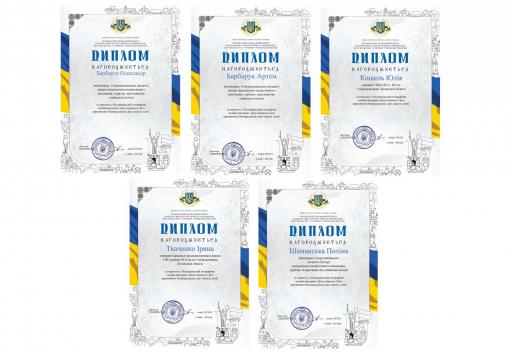 - Руслана Неймана, Владислав Сизоненко та Вадим Усачов, учні Лисичанського ліцею № 6 Сєвєродонецького району Луганської області;