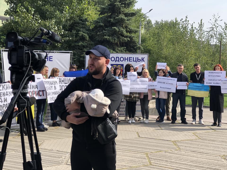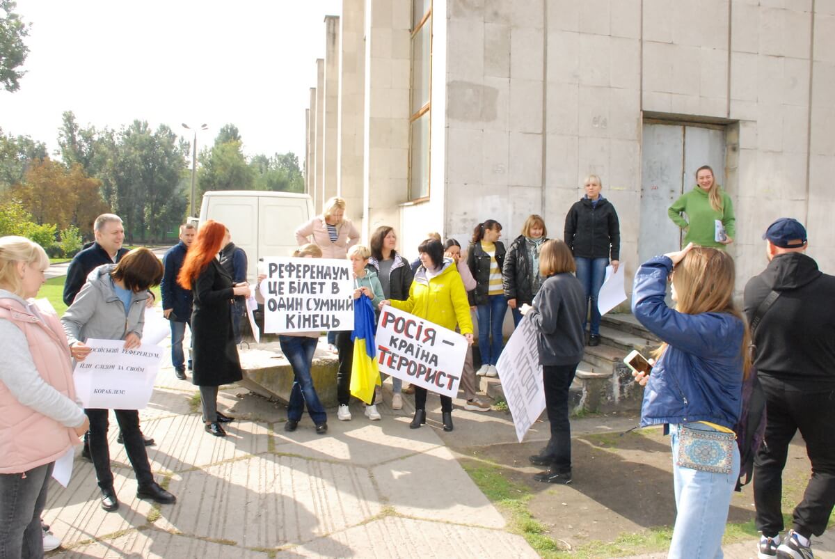 У Дніпрі 26 вересня у сквері біля ПК “Металург” відбувся черговий мітинг переселнців з Луганщини та Донеччини, які виступають проти проведення “референдумів” на окупованих територіях, - “]]>Наше місто]]>“.