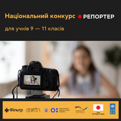 Національний проєкт із медіаграмотності «Фільтр» Міністерства культури та інформаційної політики анонсував всеукраїнський конкурс учнівських відеосюжетів «Репортер» .