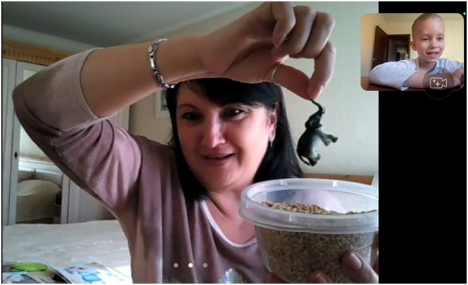 У нас з кожним фахівцем погоджено графік занять. Заняття починається як і раніше при офлайн зустрічах з питань як пройшов час, що ми робили, чи виконали домашнє завдання , що вийшло , що було складно. Потім основна частина. Наші педагоги знайомі з тими іграшками , які у нас зараз є і завжди попередньо просить щось приготувати, аби заняття було цікавим, наприклад стаканчик, воду, фарби, фольгу, маленькі іграшки..разом ми робимо фокуси, квести, виконуємо різні цікаві завдання , для дитини це головне – навчання , через гру , адже так набагато цікавіше.Часто бачу, як Микита дивується спостерігаючи за педагогом , а потім з захопленням повторює. Я йому , звісно допомагаю, мама на таких заняття посередник та руки спеціаліста. Я поруч і я направляю дитину. Заняття проходять частіше на позитиві . Але буває різне. Настрій грає не останню роль.