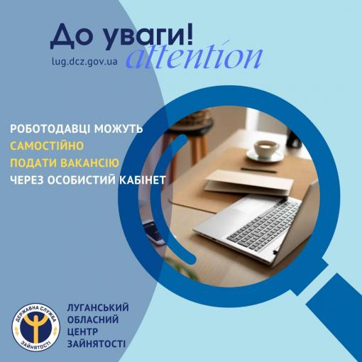 Роботодавці можуть самостійно подати вакансію через особистий кабінет роботодавця.