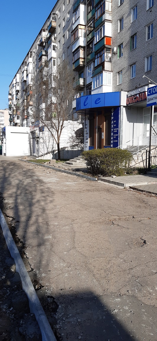 Розпочався капітальний ремонт тротуару по непарній стороні Гвардійського проспекту, там встановлюють бордюри. Що стосується парної сторони, то тут новий тротуар вже прокладено від Універмагу до магазина «Конфіскат». Красиво і зручно. Карантин не заважає місту розвиватися.