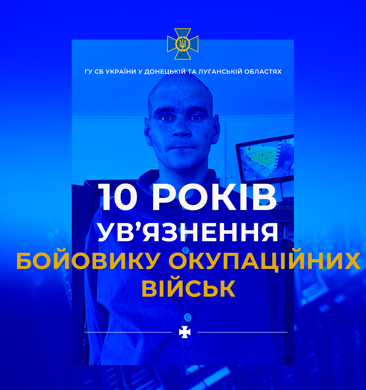 За матеріалами слідства Служби безпеки України 10 років за ґратами проведе бойовик так зв. «2 АК» російських окупаційних військ, який брав участь у збройній агресії рф проти України, зокрема, у бойових діях на території Луганської та Донецької областей, - повідомляє 3 управління ГУ СБУ в Донецькій та Луганській областях - м. Сєвєродонецьк .
