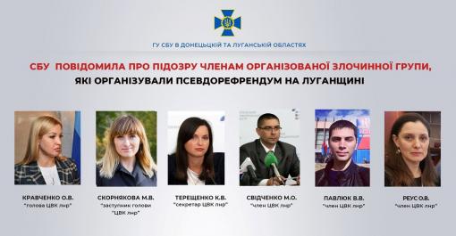 СБУ повідомила про підозру членам організованої злочинної групи «ЦВК лнр», які організували окупаційний псевдореферендум на Луганщині