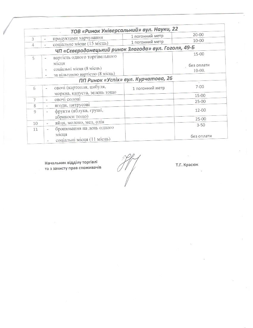 Тарифи платних послуг на ринках міста Сєвєродонецька