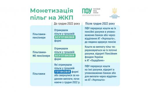 У січні 2023 року завершено реформу монетизації пільг, яка була розпочата в 2019 році. Пільги на оплату житлово-комунальних послуг їх одержувачам з січня поточного року надаються виключно у грошовій готівковій формі (нарахування – в січні, виплата – у лютому).