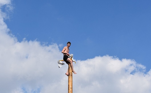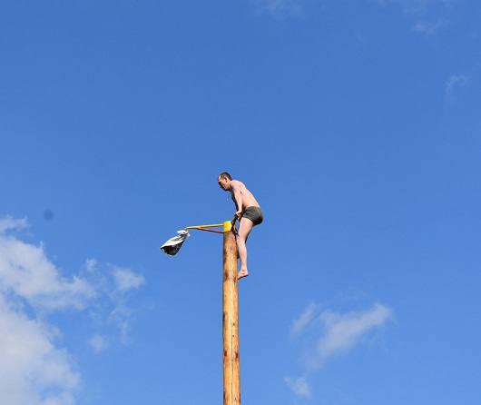 Стовп з подарунками як завжди зібрав чимало спостерігачів і вдосталь учасників, які спробували подолали висоту.