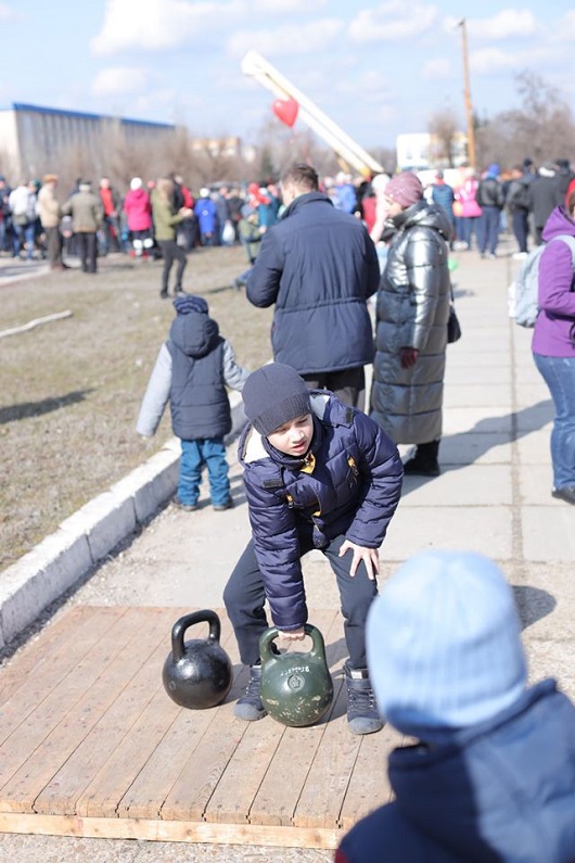 Любителі та шанувальники спортивних розваг силового напрямку зібрались біля Льодового Палацу спорту. Хизувались силою, змагались у спритності, перетягуванні канату та ін. Здібності та уміння у молодецьких народних забавах також винагороджувались.