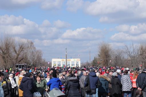 Від Льодового Палацу спорту до площі Перемоги бажаючих зустріти весну млинцями та побачити спалення опудала, яке символізує зиму, була сила-силенна .