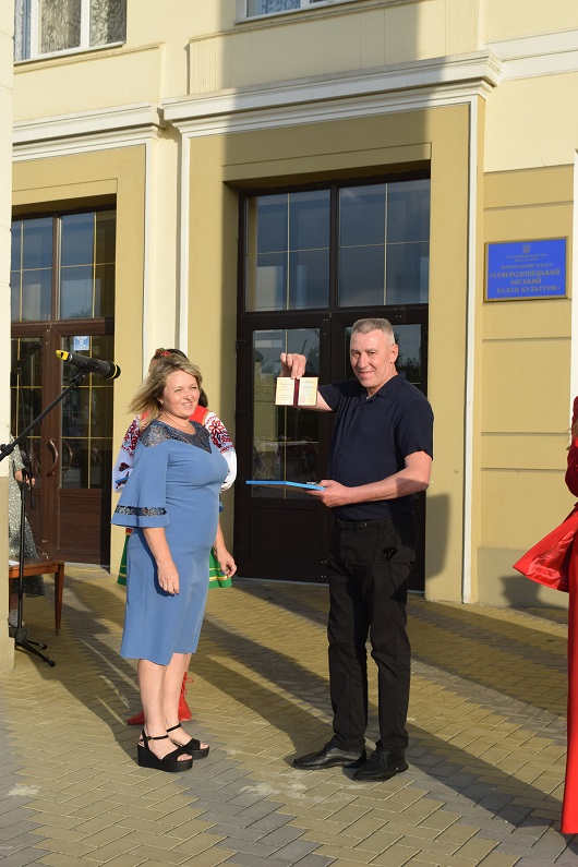 Ігор Робочий від себе особисто та від Сєвєродонецької міської військово-цивільної адміністрації привітав присутніх з 25-ю річницею Конституції України та вручив присвоєні Президентом України Володимиром Зеленським державні нагороди – почесне звання «Мати-героїня» - двом багатодітним сєвєродончанкам – Ганні Гарбузюк та Юлії Самойленко. А від Сєвєродонецької міської військово-цивільної адміністрації Ігор Васильович вручив їм ще й подарунки - сертифікати на отримання матеріальної допомоги по 10 тисяч гривень.