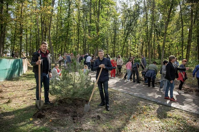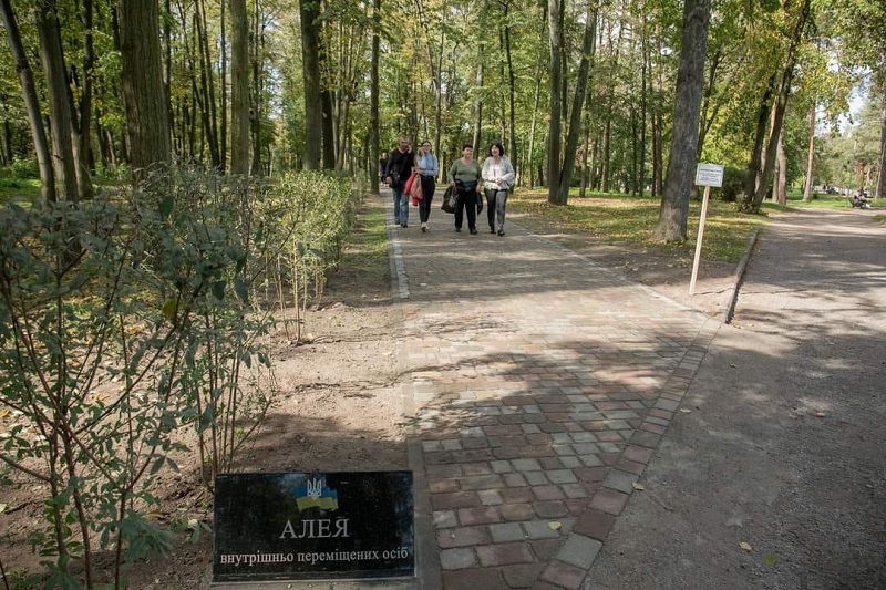Внутрішньо переміщені особи, які через війну покинули рідні домівки в Луганській та Донецькій областях та приїхали до Черкас спільними силами з представниками влади на одній із алей міському парку "Сосновий бір" висадили близько 200 декоративних кущів та саджанців сосни.